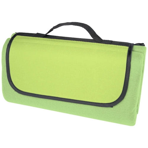 Wodoodporny koc piknikowy o gramaturze 140 g/m2 wykonany z plastiku PET z recyklingu, dzięki czemu jest to ekologiczny wybór. Po złożeniu i zabezpieczeniu koc jest łatwy do przechowywania i przenoszenia za pomocą dołączonego uchwytu.