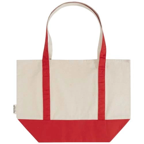 Torba na zakupy Sam wykonana w 100% z bawełny z recyklingu z certyfikatem GRS to idealna torba na piknik lub na zakupy spożywcze. Bawełna o gramaturze 320 g/m? sprawia, że torba jest mocna i trwała, a wytrzymałe uchwyty ze sznurka umożliwiają noszenie ciężkich przedmiotów w głównej komorze. Metody nadruku dostępne dla tej torby na zakupy posiadają również certyfikat GRS, co zapewnia, że cały łańcuch dostaw jest przejrzysty i certyfikowany. Długość rozwijanego uchwytu: 30 cm. Wytrzymałość do 10 kg. Pojemność: 15 litrów. Wyprodukowano w Indiach.