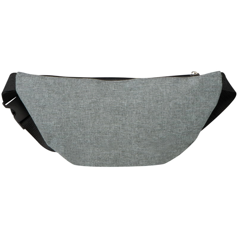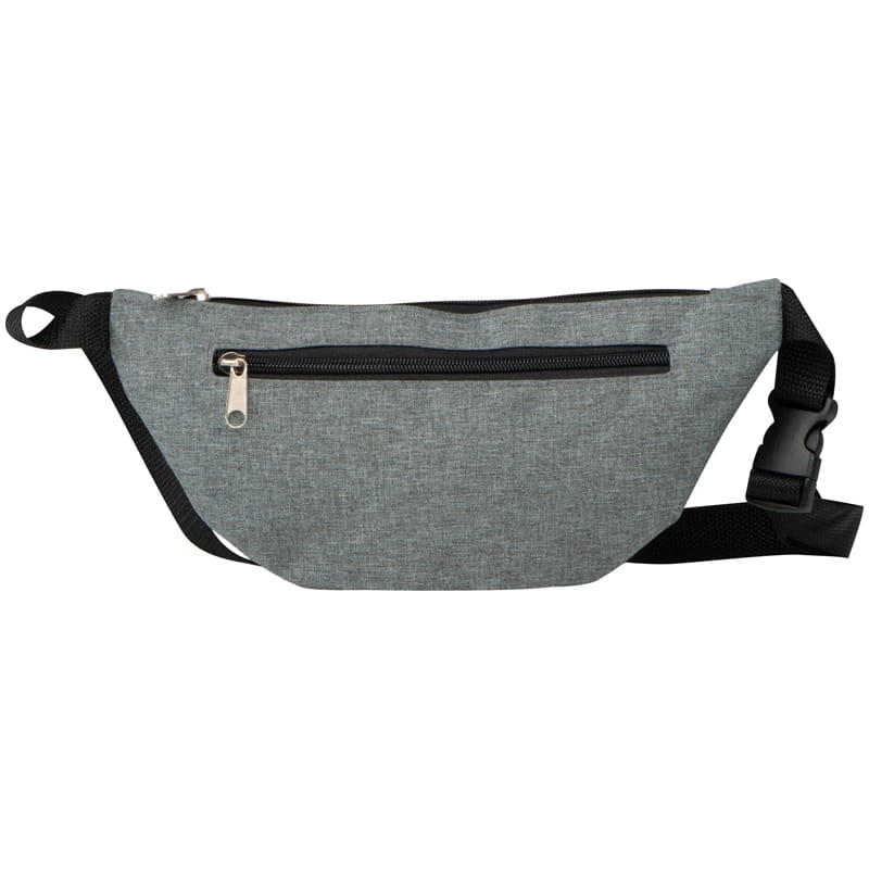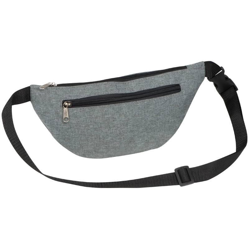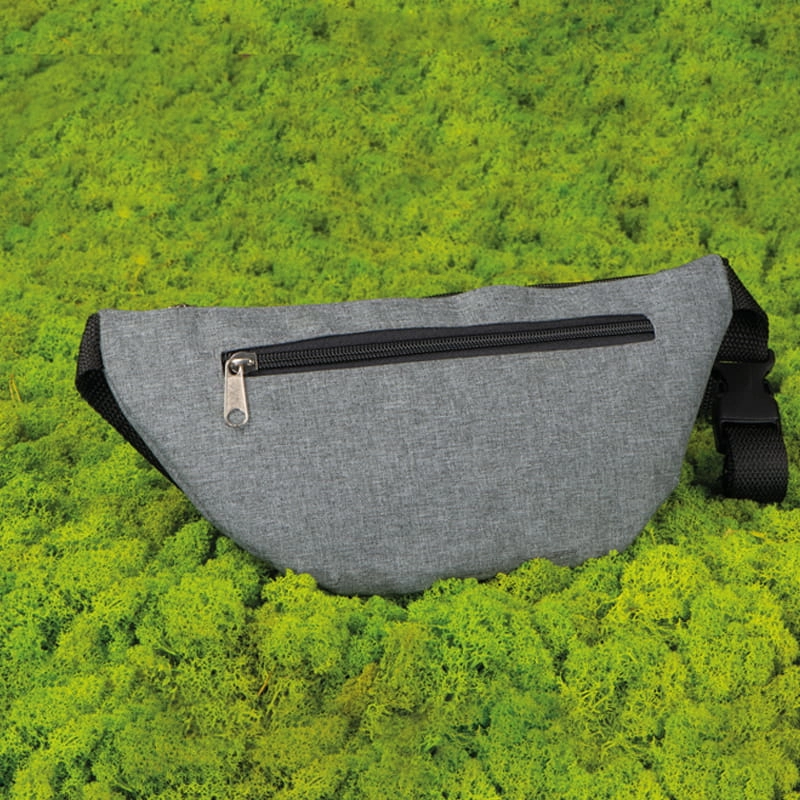 Saszetka nerka na pasku, wykonana z poliestru. Posiada przegrodę zapinaną na dwa zamki.