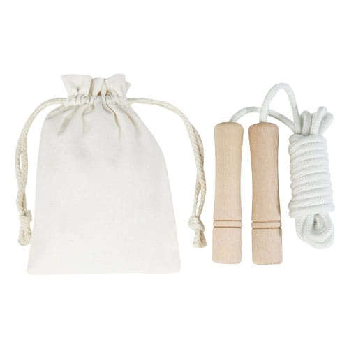 Dzięki tej skakance dla dorosłych możesz połączyć dobrą zabawę z ćwiczeniami. Lina wykonana jest z bawełny, a uchwyty z drewna bukowego. Długość liny wynosi 310 cm, co pozwala na łatwe skakanie dorosłym o wzroście do 195 cm. Uchwyty (12 x 2,5 cm) są ergonomicznie ukształtowane, zapewniając wygodny chwyt. Dostarczana z bawełnianym woreczkiem do przechowywania (18 x 13 cm). Jako opcja trwałej dekoracji zalecany jest grawer laserowy.