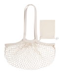 100% bawełny, siatkowa torba na zakupy z długimi uchwytami. W tym mała składana torebka z zamknięciem na sznurek.