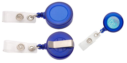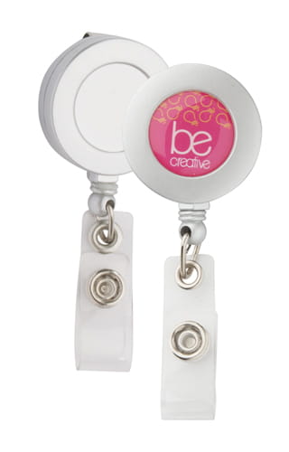 Plastikowy ski pass z wysuwaną linką.