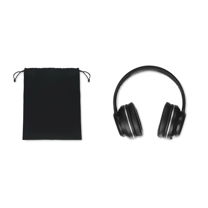 Składane słuchawki bezprzewodowe z aktywną redukcją szumów (ANC) z ABS. Akumulator litowo-jonowy 500 mAh. Funkcja głośnomówiąca i wbudowany mikrofon. Czas odtwarzania ok. +10 godzin. Zawiera kabel do ładowania micro USB. Całość zapakowana w etui PU. Zasięg działania: 10 m.