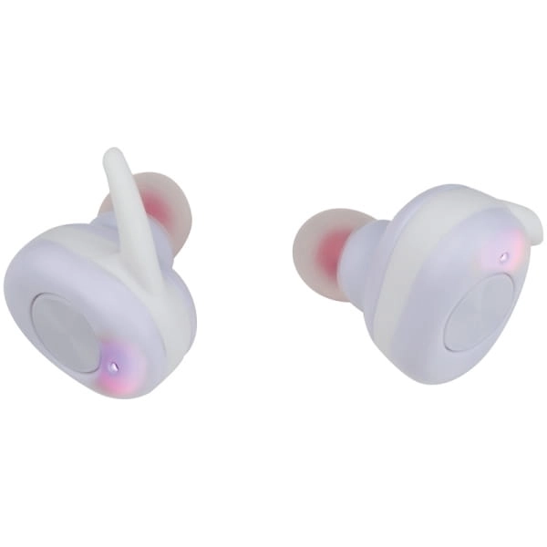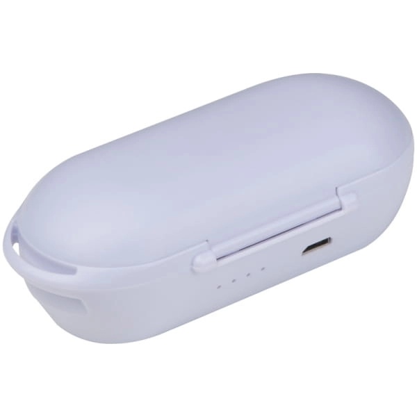 Słuchawki douszne Bluetooth z kablem ładującym USB oraz stacją ładującą, która jednocześnie pełni funkcje etui. Czas pracy: 2-3h, czas ładowania: 1h, bateria 35mAh.