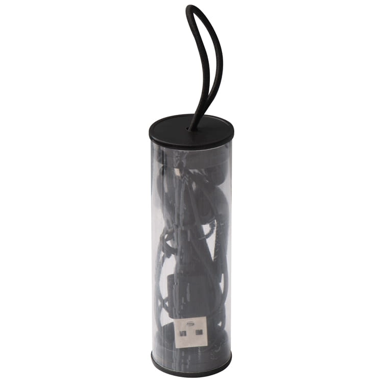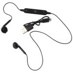 Słuchawki bezprzewodowe z Bluetooth i regulacją głośności oraz kablem z portem USB do ładowania. Całość umieszczona w plastikowym opakowaniu, na którym można umieścić logotyp.