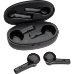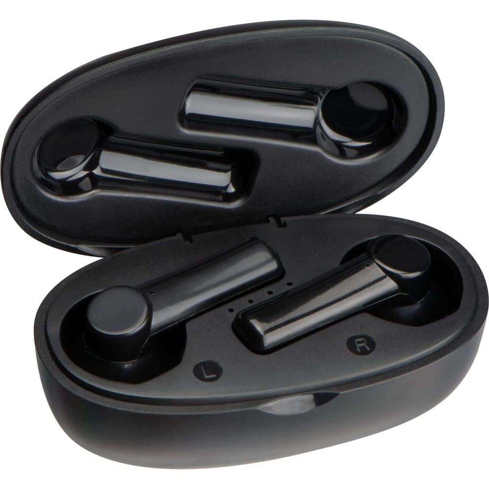 Słuchawki douszne, bezprzewodowe - bluetooth 5.0. Obudowa posiada baterię o mocy 250 mAh, zamykając słuchawki w etui naładujesz je w przeciągu 1h. Długość odtwarzania dźwięku 2-3h, zasięg 10 m.