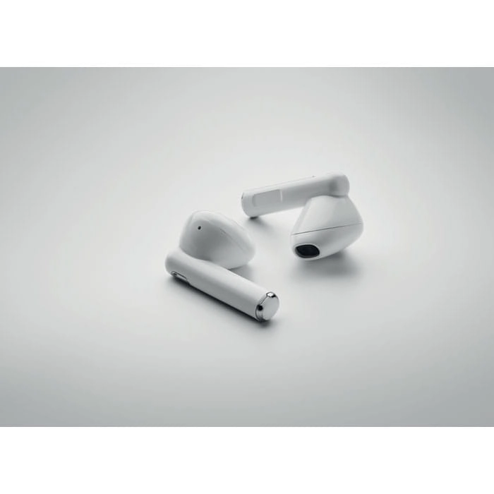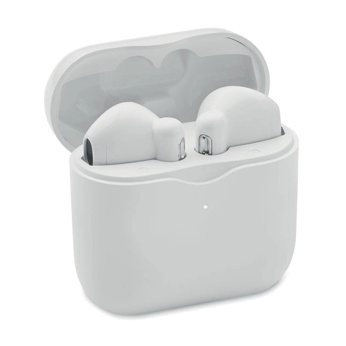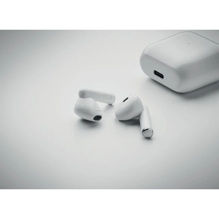 Bezprzewodowe słuchawki stereo ABS (TWS) 5.3 z mikrofonem, wbudowanym akumulatorem 30 mAh i ładowarką 200 mAh. Czas odtwarzania ok. 4 godzin. Automatyczne parowanie.