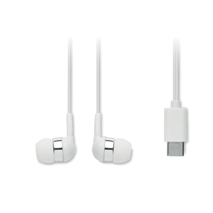 Silikonowe słuchawki douszne, które pomagają wygłuszyć hałas zewnętrznym, zapewniając lepszą jakość dźwięku. Zapakowane w plastikowe pudełko, w którym można prawidłowo przechowywać kabel o długości 120 cm. W zestawie 3 zapasowe silikonowe nakładki w różnych rozmiarach. Złącze: Typ-C.