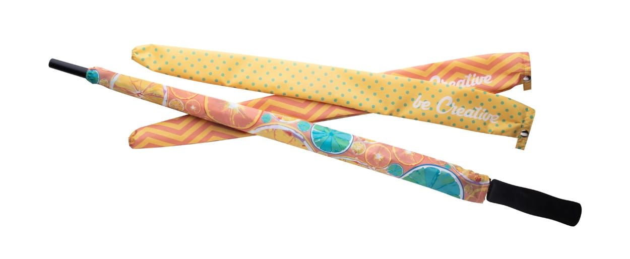 Własnego projektu pokrowiec na parasol (22-24"), 190T pongee. Cena zawiera nadruk sublimacyjny. Min. ilość: 50szt.