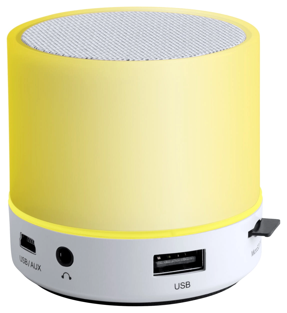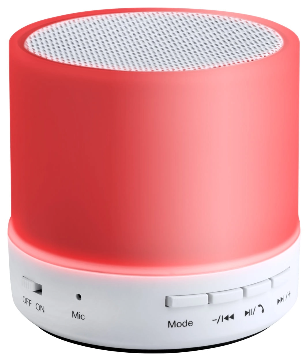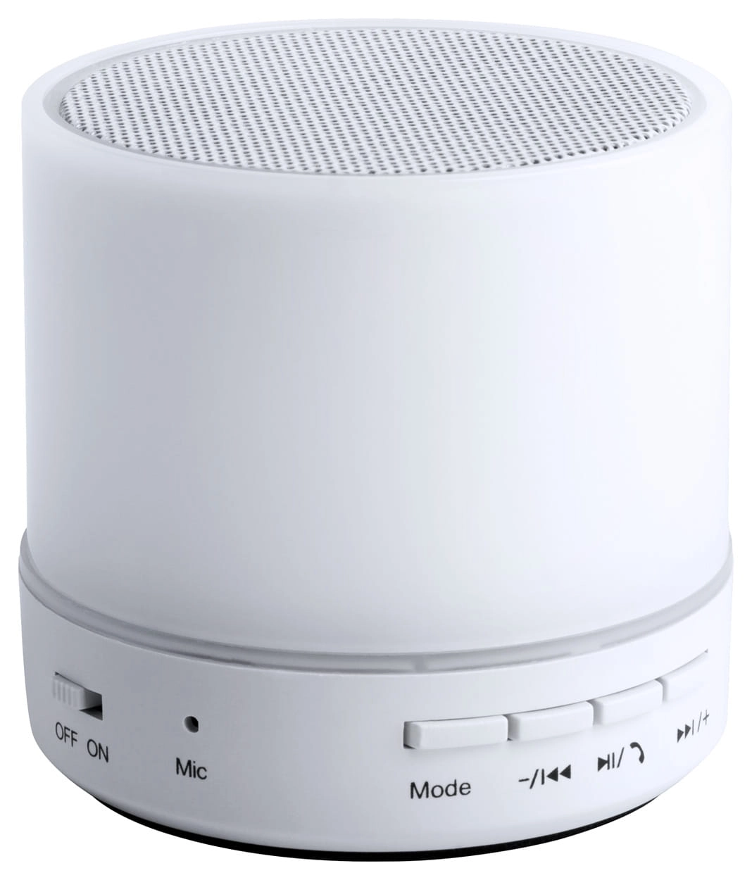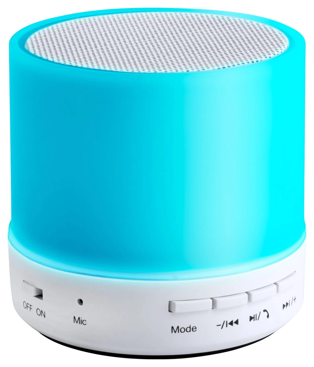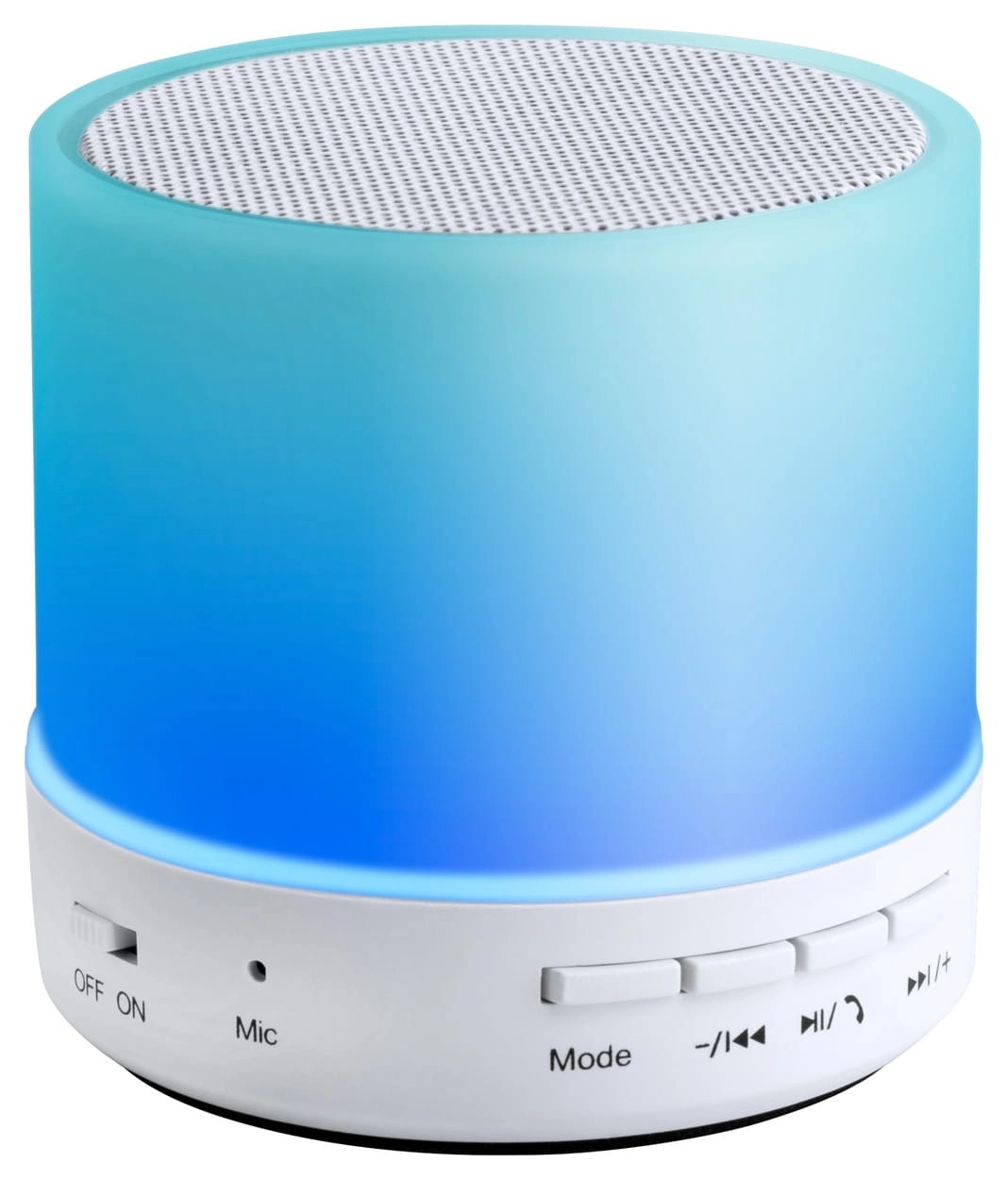 Głośnik Bluetooth w plastikowej obudowie z wielokolorowym światłem LED. Z funkcją zestawu głośnomówiącego, radiem FM i wbudowanym akumulatorem. W zestawie kabel USB do ładowania.