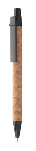 Długopis z korkową powłoką pochodzącą z recyklingu papieru. Zawiera plastikowe elementy i niebieski wkład.