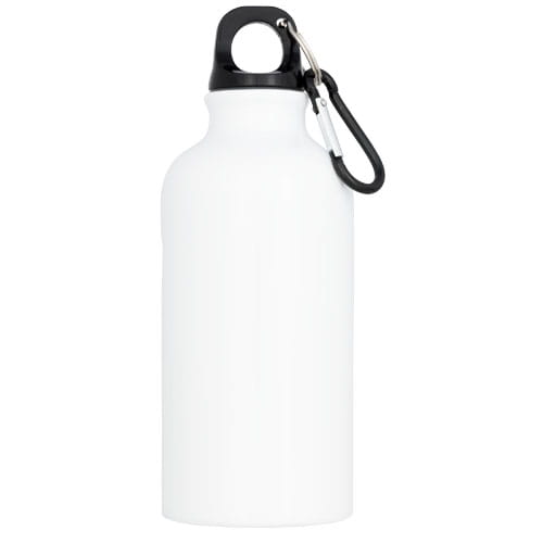 Sublimacyjny bidon z karabińczykiem Oregon 400 ml. Butelka z pojedynczą ścianką i zakrętką. Butelka ma specjalną powłokę do sublimacji. Karabinek nie nadaje się do wspinaczki. Pojemność wynosi 400 ml. Aluminium.