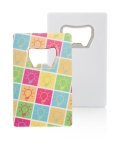 Prostokątny, plastikowy otwieracz do butelek.