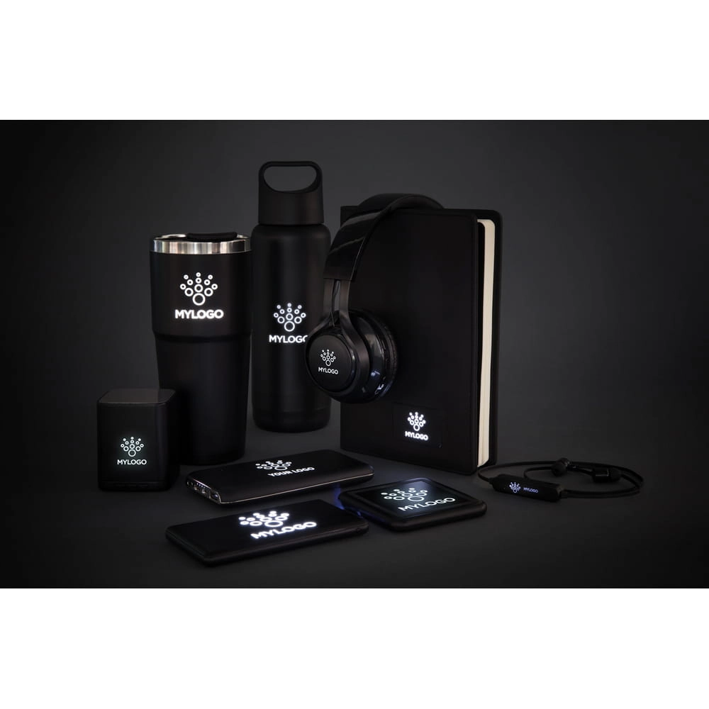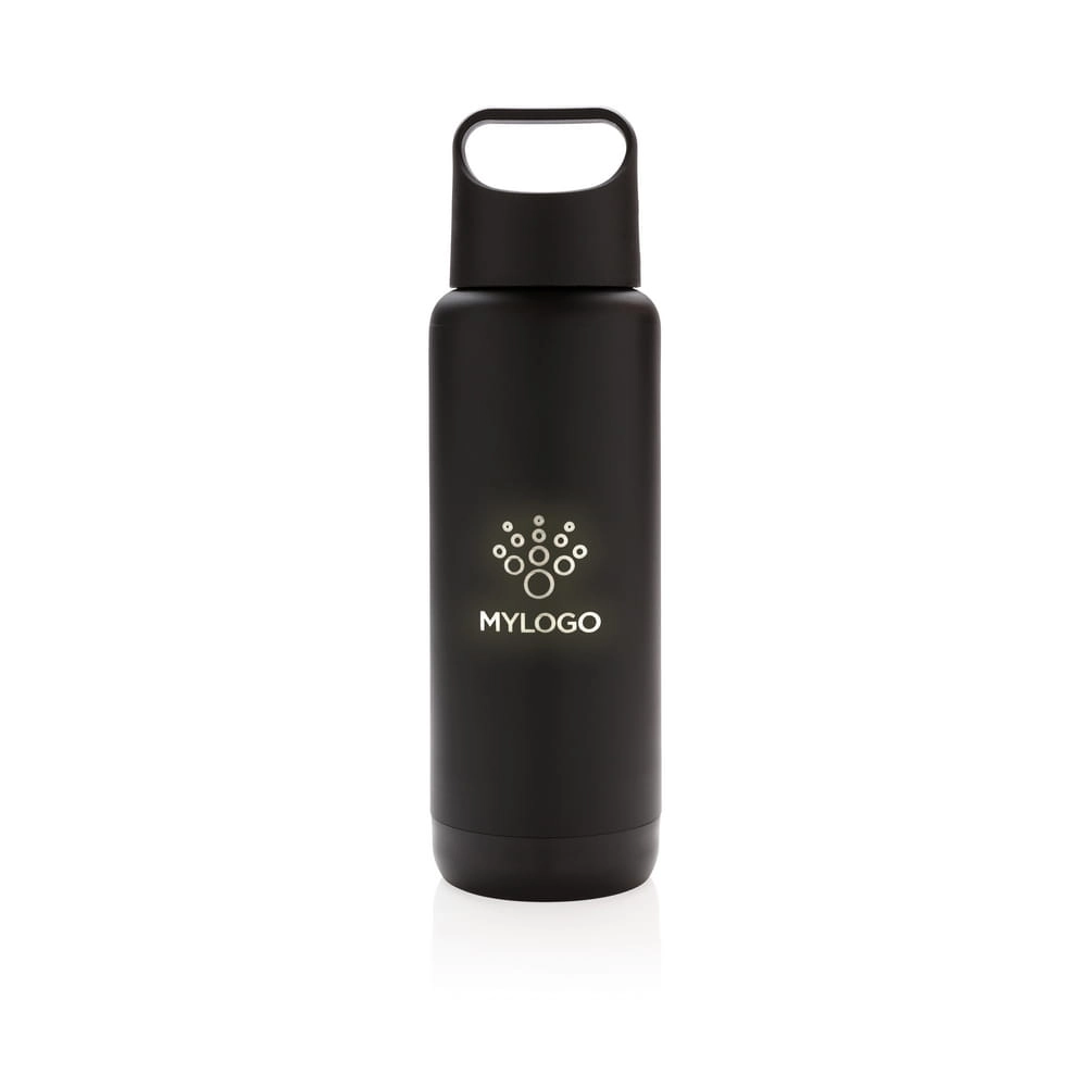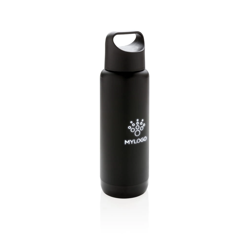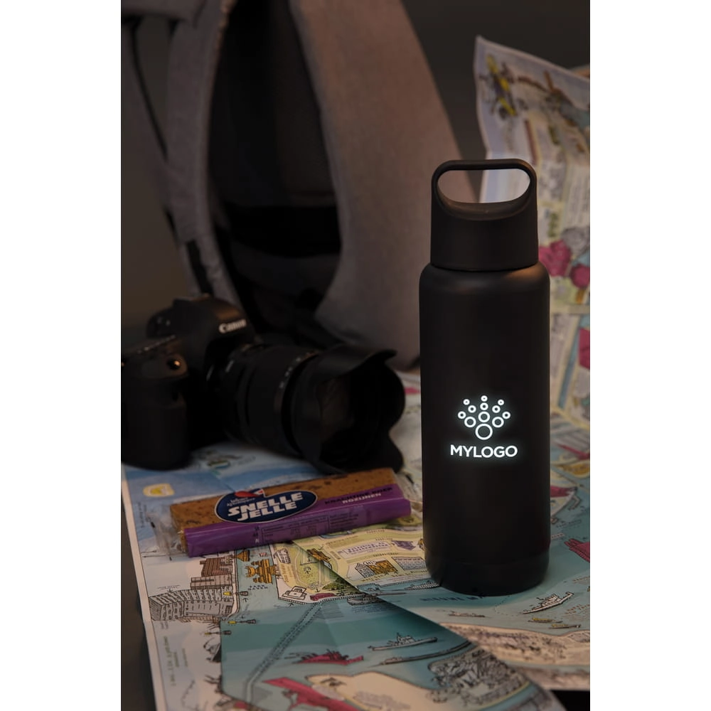 Termos o pojemności 500 ml z podwójnymi ściankami. Wewnątrz stal nierdzewna 304, a na zewnątrz plastik ABS. Grawer ukazuje podświetlaną powierzchnię. W komplecie 2 baterie CR2032.