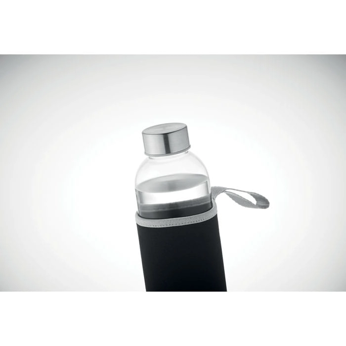 Szklana butelka z neoprenowym etui o pojemności 750 ml. Nie nadaje się do napojów gazowanych. Szczelna.