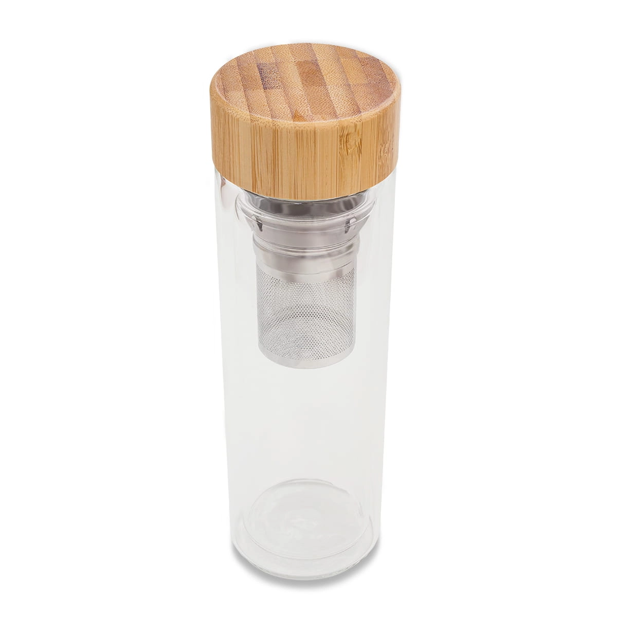 Butelka wykonana ze szkła borokrzemowego z podwójnymi ściankami, o pojemności 420 ml. Posiada zaparzacz, który umożliwia łatwe parzenie ulubionych naparów czy herbaty. Drewniana zakrętka dodaje butelce naturalnego wyglądu.