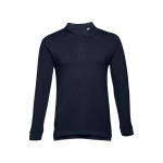 Męski t-shirt polo z długim rękawem ze 100% bawełny o splocie piqué (210 g/m2) ze zgrzebną przędzą bawełnianą (kolor 183: 85% bawełna/15% wiskoza). Polo o regularnym fasonie, z prążkowanym kołnierzykiem i rękawami. Kołnierzyk jest wzmocniony taśmą piqué. Posiada 3 dopasowane kolorystycznie guziki (dodatkowy guzik umieszczony w szwie wewnętrznym). Zszywany po bokach, z małymi rozcięciami w szwach bocznych. Zdejmowana widoczna etykieta