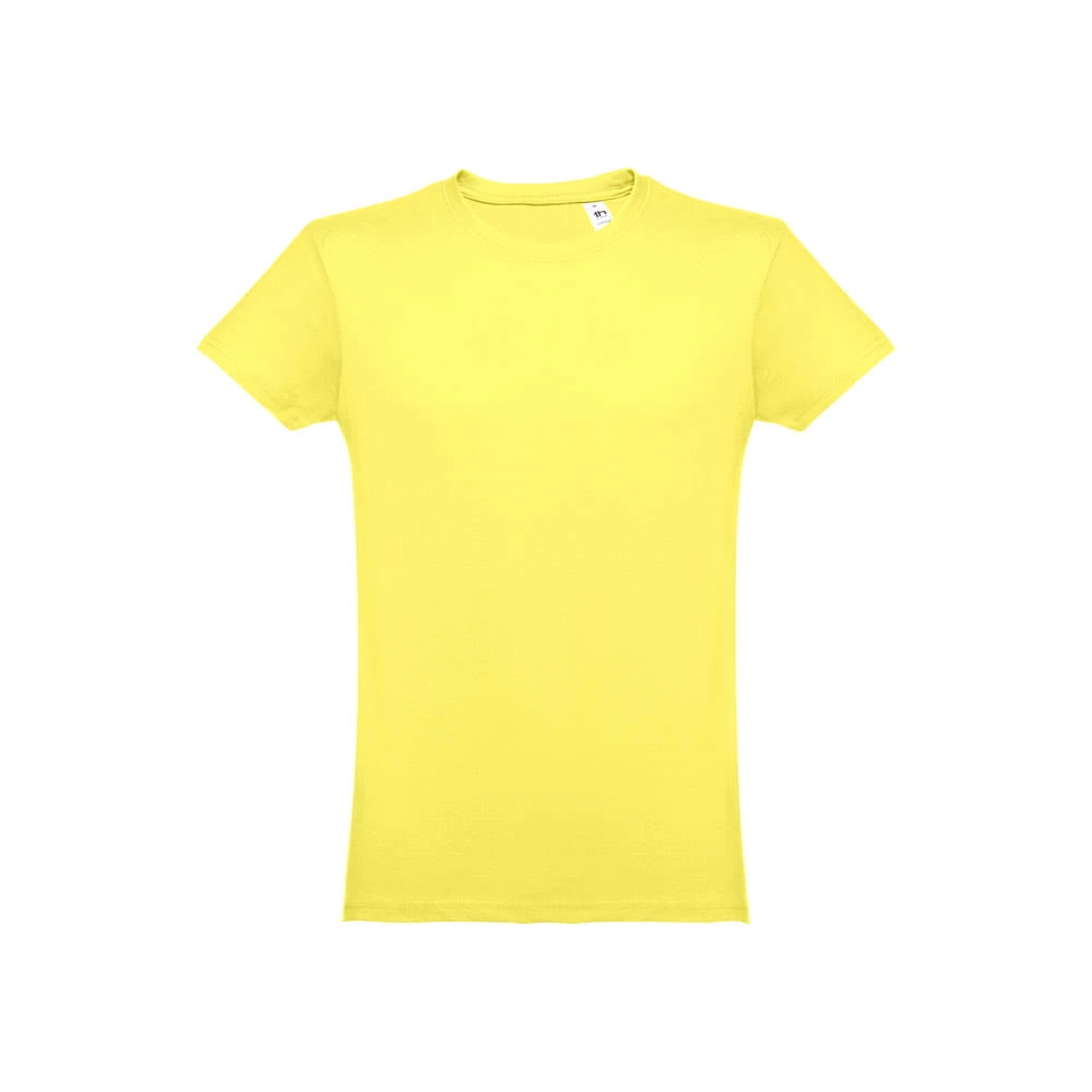 Męski t-shirt o regularnym kroju z dżerseju 100% bawełny (150 g/m?) ze zgrzebną przędzą bawełnianą (kolor 183: 90% bawełny/10% wiskozy). Posiada prążkowany kołnierz 1x1 ze wzmacniającą tasiemką dżersejową i podwójnym szwem na rękawach i na dole