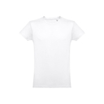 Męski t-shirt o regularnym kroju z dżerseju 100% bawełny (150 g/m2) ze zgrzebną przędzą bawełnianą. Posiada prążkowany kołnierz 1x1 ze wzmacniającą tasiemką dżersejową i podwójnym szwem na rękawach i na dole