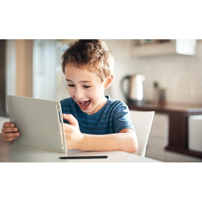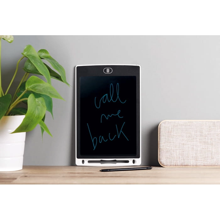 Tablet z ekranem LCD 8,5 cala z rysikiem. Dotknięcie przycisku umożliwia skasowanie rysunku. Cienki kształt ułatwia użytkowanie.1 bateria CR2020 w zestawie.