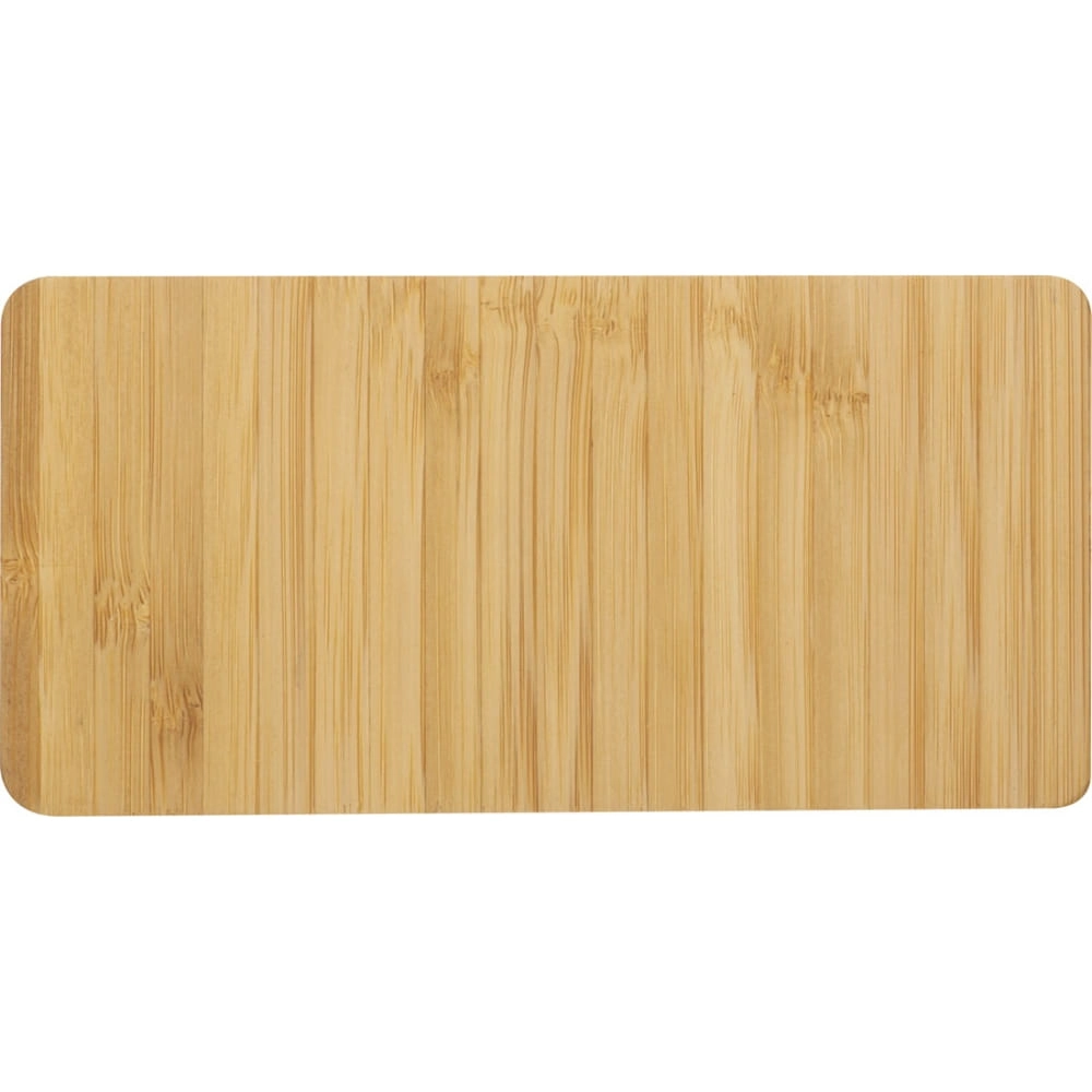 Idealny zestaw do kawy czy herbaty - zawiera bambusową deseczkę z miejscem na słodką przekąskę, łyżeczkę i szklaną filiżankę.