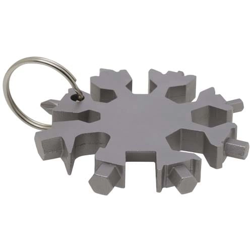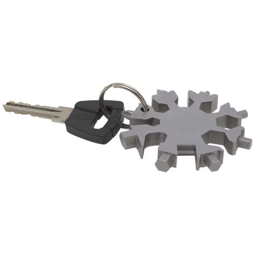 Solidne i kompaktowe 8-funkcyjne narzędzie wielofunkcyjne wykonane ze stali nierdzewnej, które można nosić przy kluczach.
