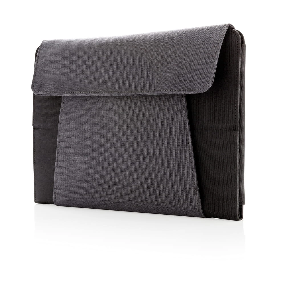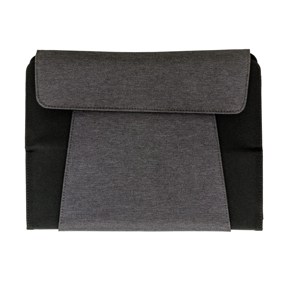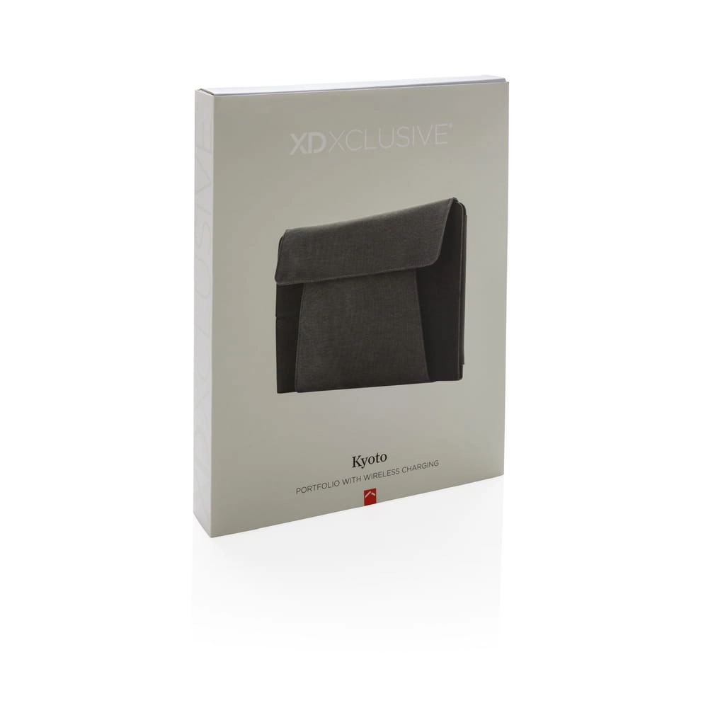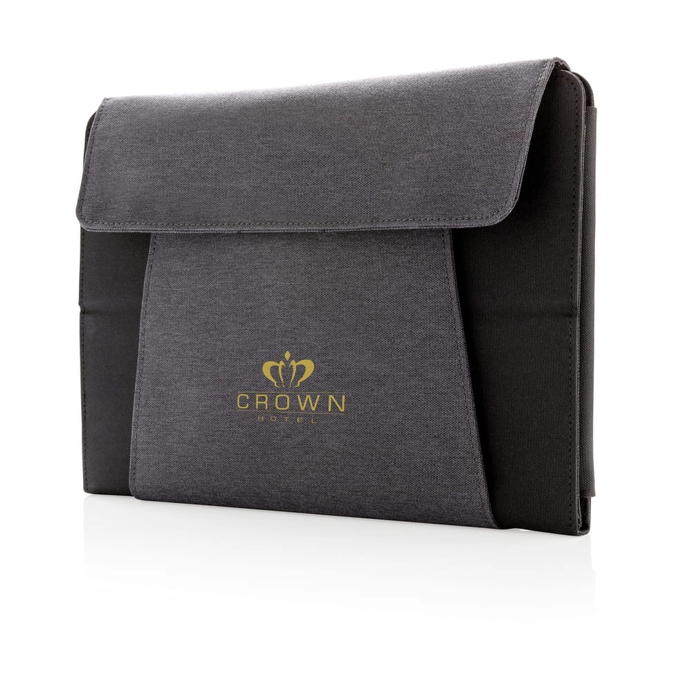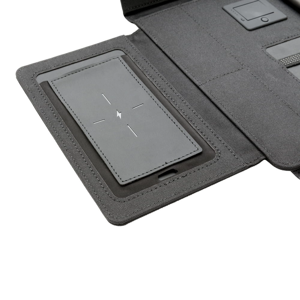 Otwórz teczkę konferencyjną A4 Kyoto i przekonaj się, że w środku zmieści się całe biuro, łącznie z tabletem (który może również stać pionowo). W komplecie bezprzewodowy power bank 4000 mAh. Kompatybilny ze wszystkimi urządzeniami QI, np. najnowszej generacji systemy Android, iPhone 8 (i wyższe). Wejście 5V/1A, wyjście 5V/2.1A, bezprzewodowe wyjście 5W. Produkt wykonany z rPET (recycled PET bottles). Wewnątrz wyjmowany notatnik A5 z 64 kartkami 80 g/m2 w linie w kolorze kremowym. Wzór zastrzeżony®