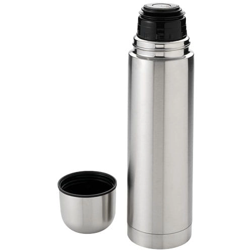 Termos Sullivan. Podwójne ścianki ze stali nierdzewnej, zintegrowany kubek w nakrętce. Możliwość nalewania jedną ręką, dzięki przyciskowi rynienki spustowej, która zamyka się automatycznie po przekręceniu nakrętki. Pojemność 750 ml. Stal nierdzewna.