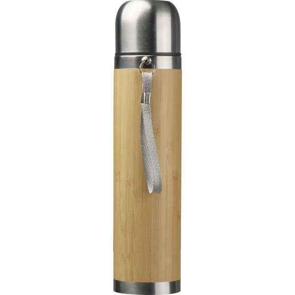 Termos próżniowy o pojemności 400 ml z podwójnymi ściankami, z kubkiem do picia i paskiem do przenoszenia. Wykonany jest ze stali nierdzewnej i posiada powłokę bambusową.
