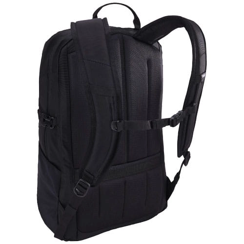 Wszechstronny plecak inspirowany stylem outdoorowym, wyposażony w wiele rozwiązań ułatwiających przechowywanie w podróży. Posiada podwyższone, dedykowane kieszenie na 16-calowy laptop MacBook® lub 15,6-calowy komputer PC oraz tablet 10,5-calowy, a także panel służący do organizacji mniejszych akcesoriów. Komora dodatkowa nadaje się do przechowywania ubrań, akcesoriów lub innych przedmiotów osobistych. Plecak ma pasek piersiowy, wyściełany tylny panel z kanałem przepływu powietrza i boczne paski kompresyjne, aby zrównoważyć obciążenie, dzięki czemu jest wygodniejszy w noszeniu. Wykonane z zatwierdzonego przez Bluesign® nylonu 400D z zamkami YKK.