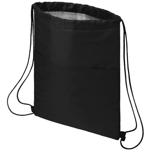 Torba chłodząca z zamknięciem na sznurek w kolorze czarnym. Posiada otwartą przednią kieszeń. Mieści do 12 puszek. Wytrzymałość do 5 kg.