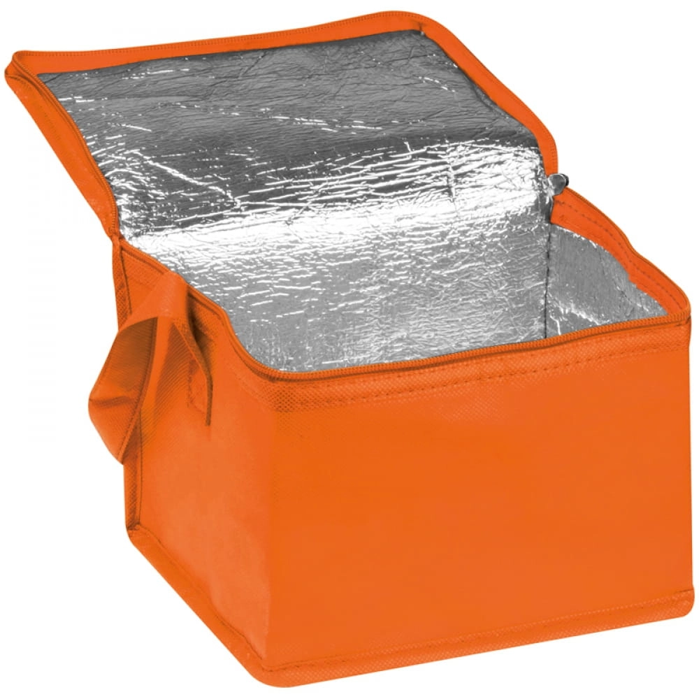 Torba chłodząca wykonana z materiału non-woven, zamykana na zamek. Pomieści 6 puszek (o pojemności 0,33 l).