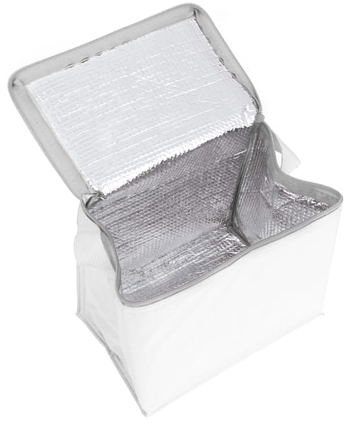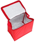 Nylonowa torba-lodówka z praktycznym uchwytem, zapinana na zamek. Mieści 6 dużych puszek lub butelek o pojemności 0,5 l. Logotyp umieszczamy z przodu torby. Grupa nadruku: S1, TT1, TC.