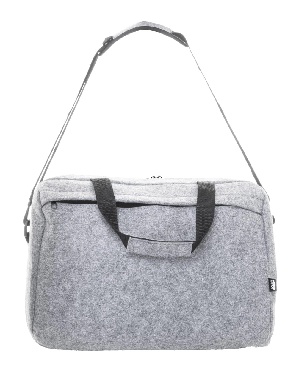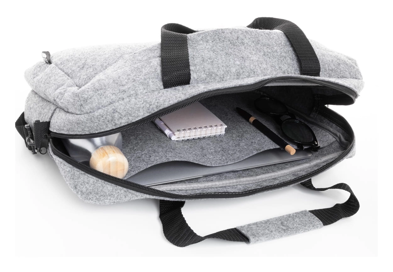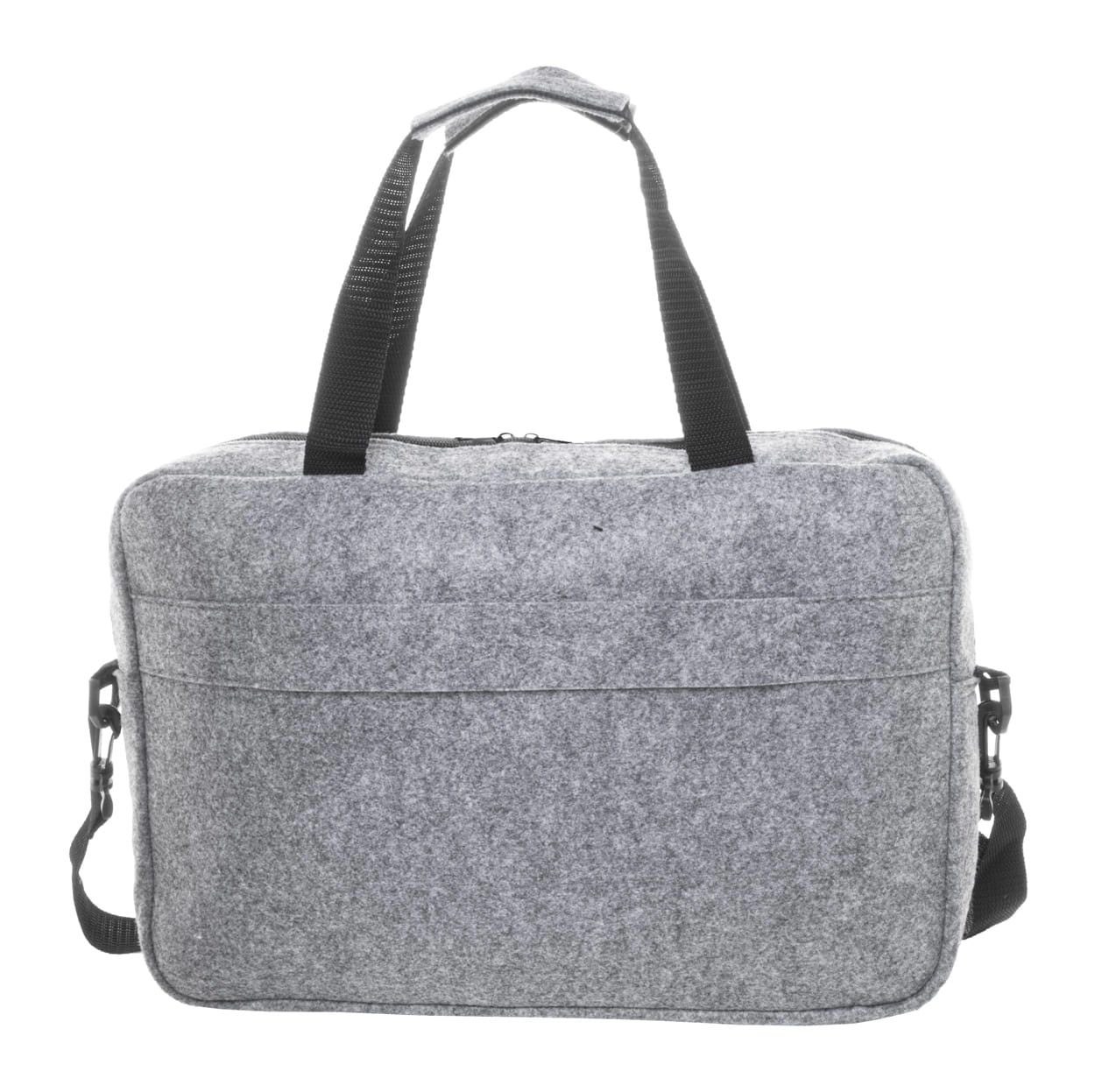 Torba na dokumenty z filcu RPET z główną kieszenią na suwak i kieszenią z przodu. Z komorą na laptopa (15"), paskiem na walizkę i regulowanym paskiem na ramię. Z charakterystyczną metką RPET.