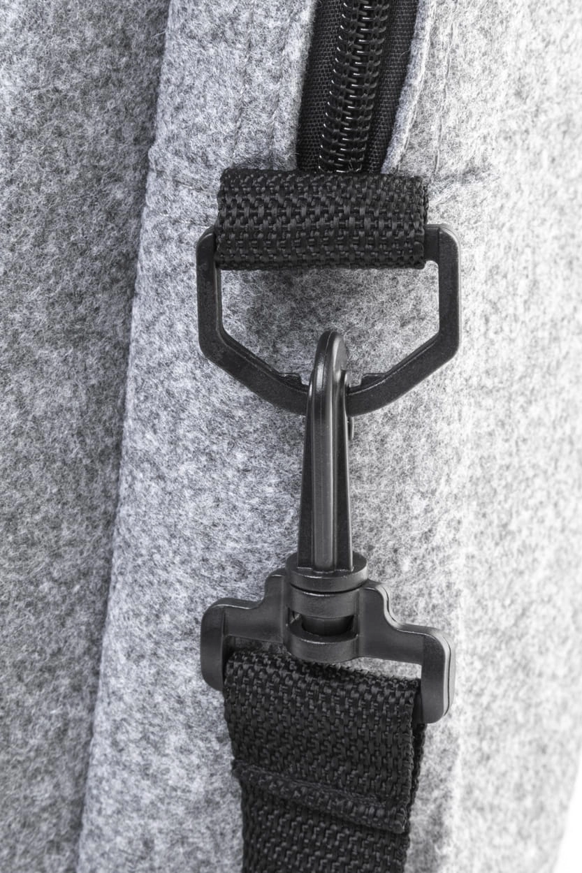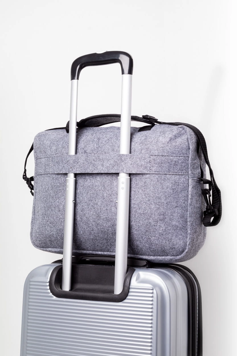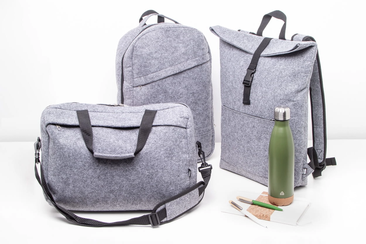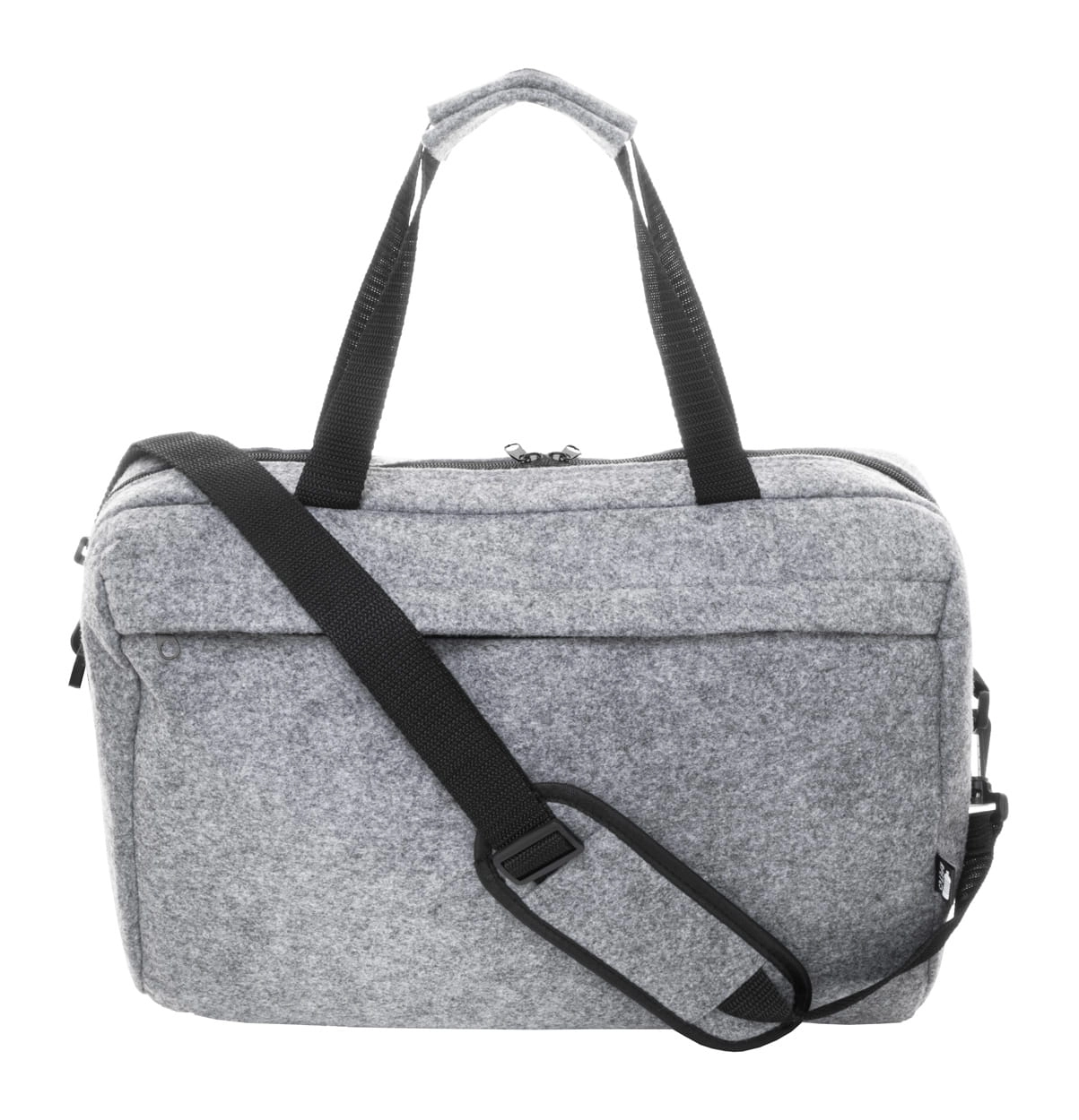 Torba na dokumenty z filcu RPET z główną kieszenią na suwak i kieszenią z przodu. Z komorą na laptopa (15"), paskiem na walizkę i regulowanym paskiem na ramię. Z charakterystyczną metką RPET.