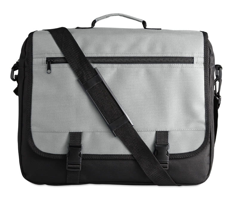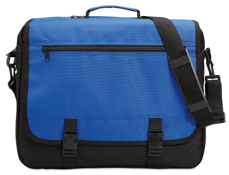Torba na dokumenty z przednią kieszenią zamykaną na zamek oraz 2 klamry. Wykonana z poliestru 600D. Odpinany i regulowany pasek na ramię.