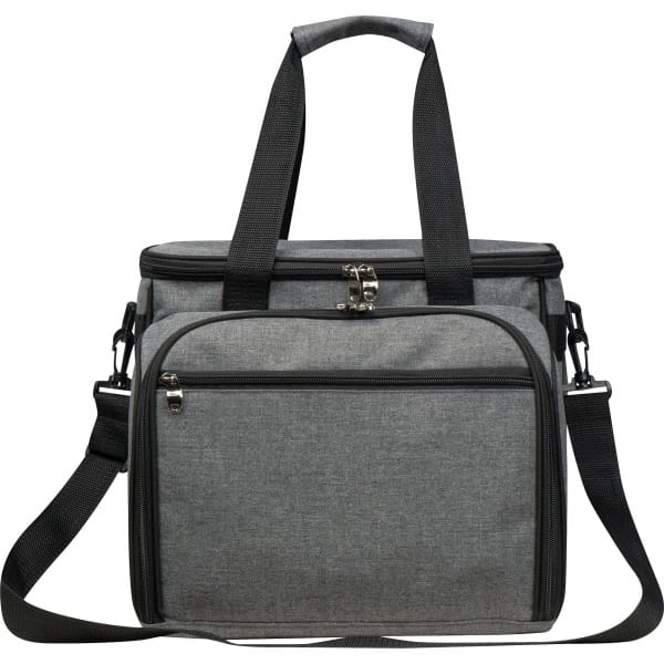 Torba piknikowa z wygodnym paskiem na ramię, z komorą chłodzącą i zestawem sztućców i talerzy dla 4 osób.
