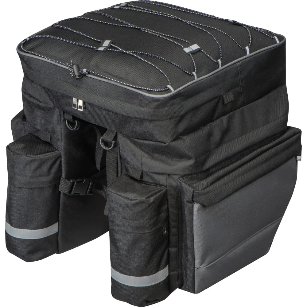 Wysokiej jakości torba na rower, do mocowania na bagażniku, posiada wiele praktycznych przegródek.