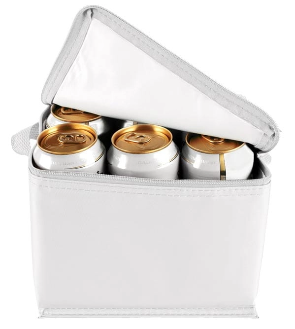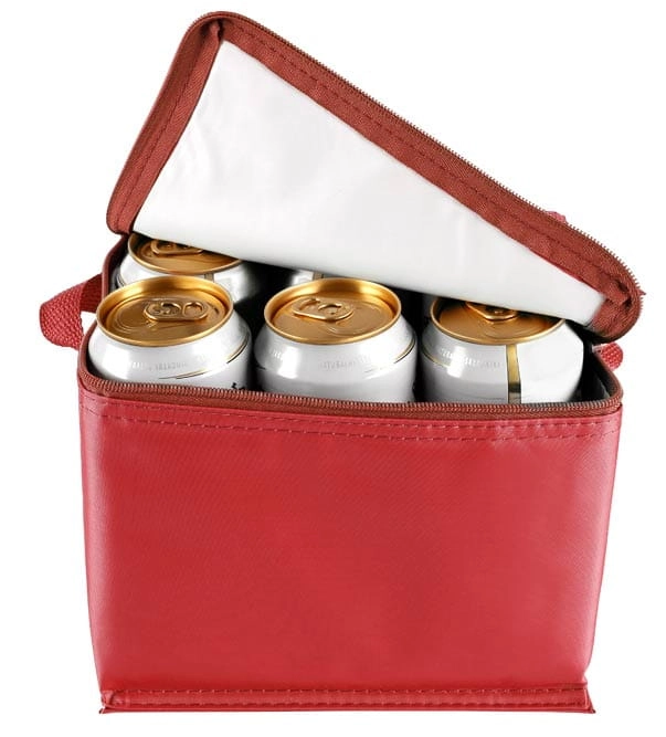 Nylonowa torba - lodówka z praktycznym uchwytem, zapinana na zamek. Mieści 6 dużych puszek lub butelek o pojemności 500 ml.