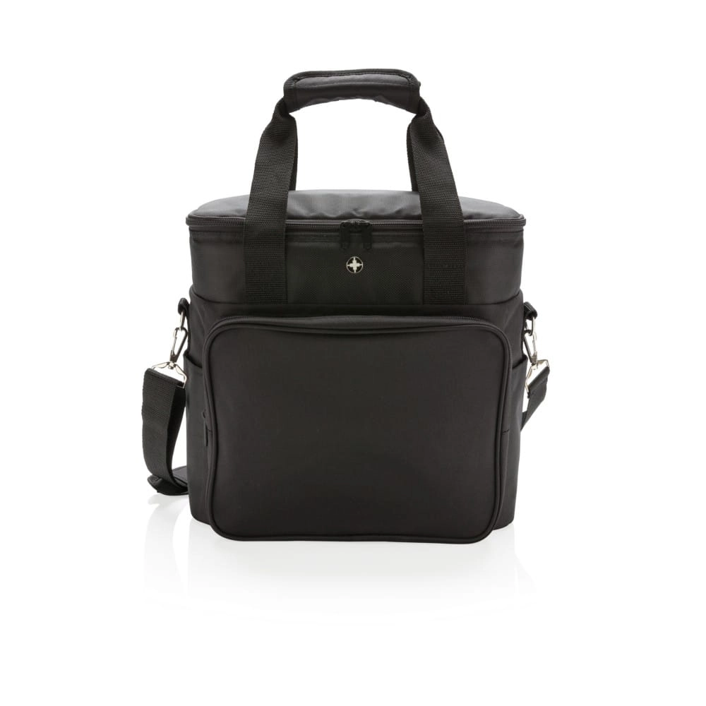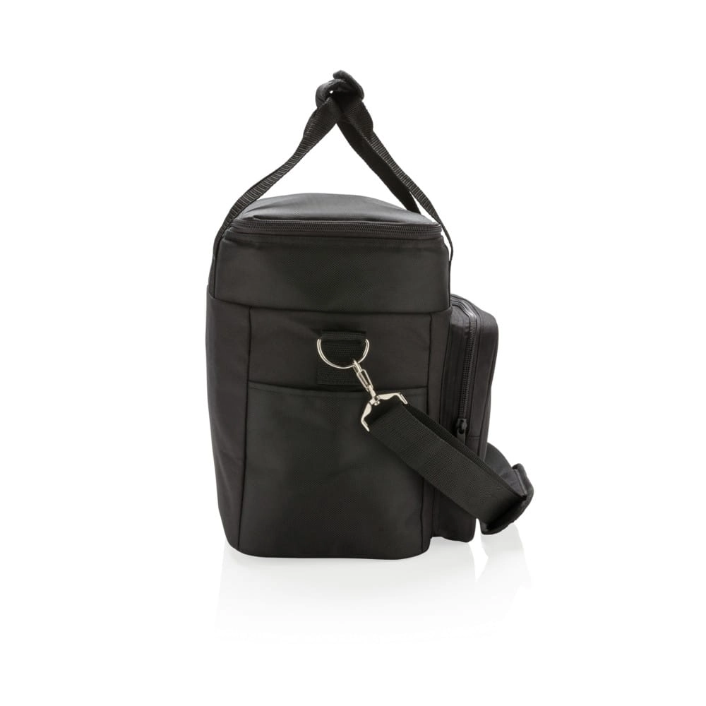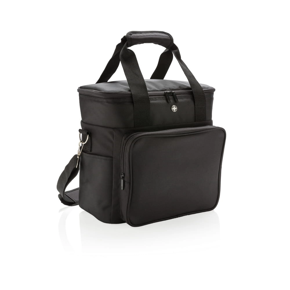 Torba termoizolacyjna Deluxe, wykonana z poliestru 1680D i 600D, pojemna przegroda główna na zamek błyskawiczny, zmieści do 20 puszek 0,33 l, kieszeń z przodu, podwójnie wzmocnione uchwyty, regulowany pasek na ramię z możliwością odpięcia