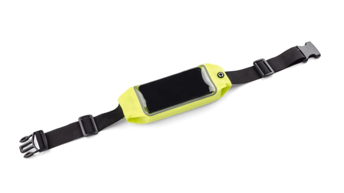 Sportowa elastyczna torebka biodrowa TROTE przyda się każdemu kto lubi aktywnie spędzać czas. Jaskrawy kolor oraz elementy z taśmy odblaskowej zapewnią każdemu użytkownikowi widoczność po zmroku. Torebka wyposażona jest w kieszonkę z wygodnym okienkiem na telefon, dzięki któremu łatwo i szybko można sprawdzić ważne informacje na telefonie. Dodatkowo torebka ma wyjście na słuchawki.