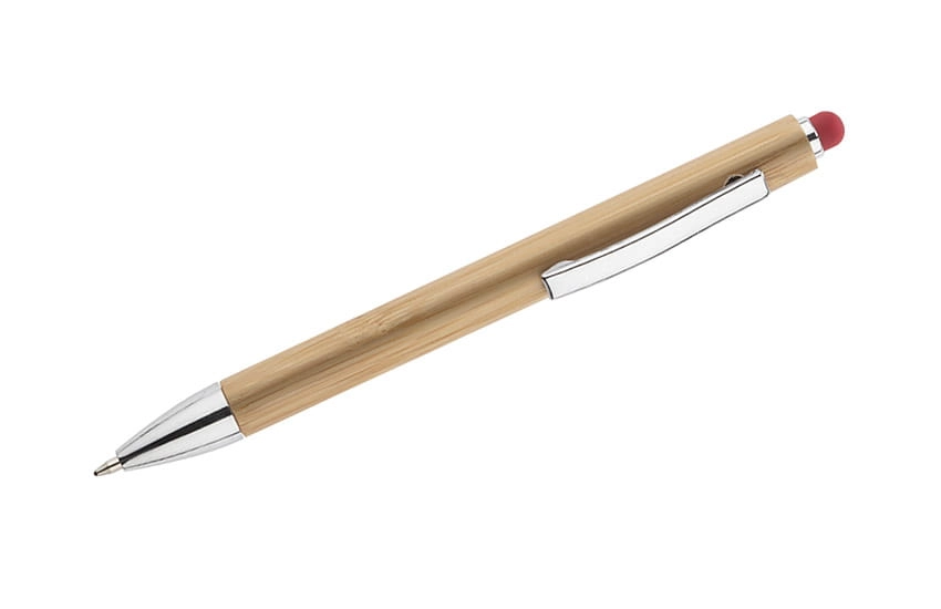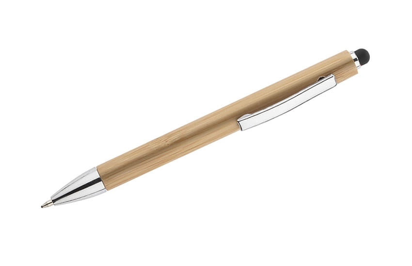 TUSO to długopis, którego korpus został w całości wykonany z bambusa. Chromowane wykończenia nadają mu elegancji. Kolorowa końcówka do obsługi ekranów dotykowych stanowi ciekawą ozdobę. Długopis automatyczny. Wkład typu G2 w kolorze niebieskim.