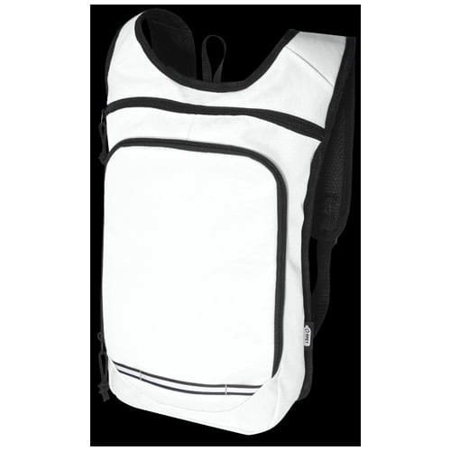 Wykonany w 100% z materiału z certyfikatem GRS pochodzącego z recyklingu i hydrofobowego, plecak Trails ma jedną przednią kieszeń zapinaną na zamek i jedną główną komorę zapinaną na zamek i jest kompatybilny z pęcherzem wodnym przeznaczonym do konsumpcji. Odblaskowe paski zapewniają widoczność, a siatkowy tył zapewnia wygodę, dzięki czemu jest doskonałym wyborem do uprawiania aktywności na świeżym powietrzu.
