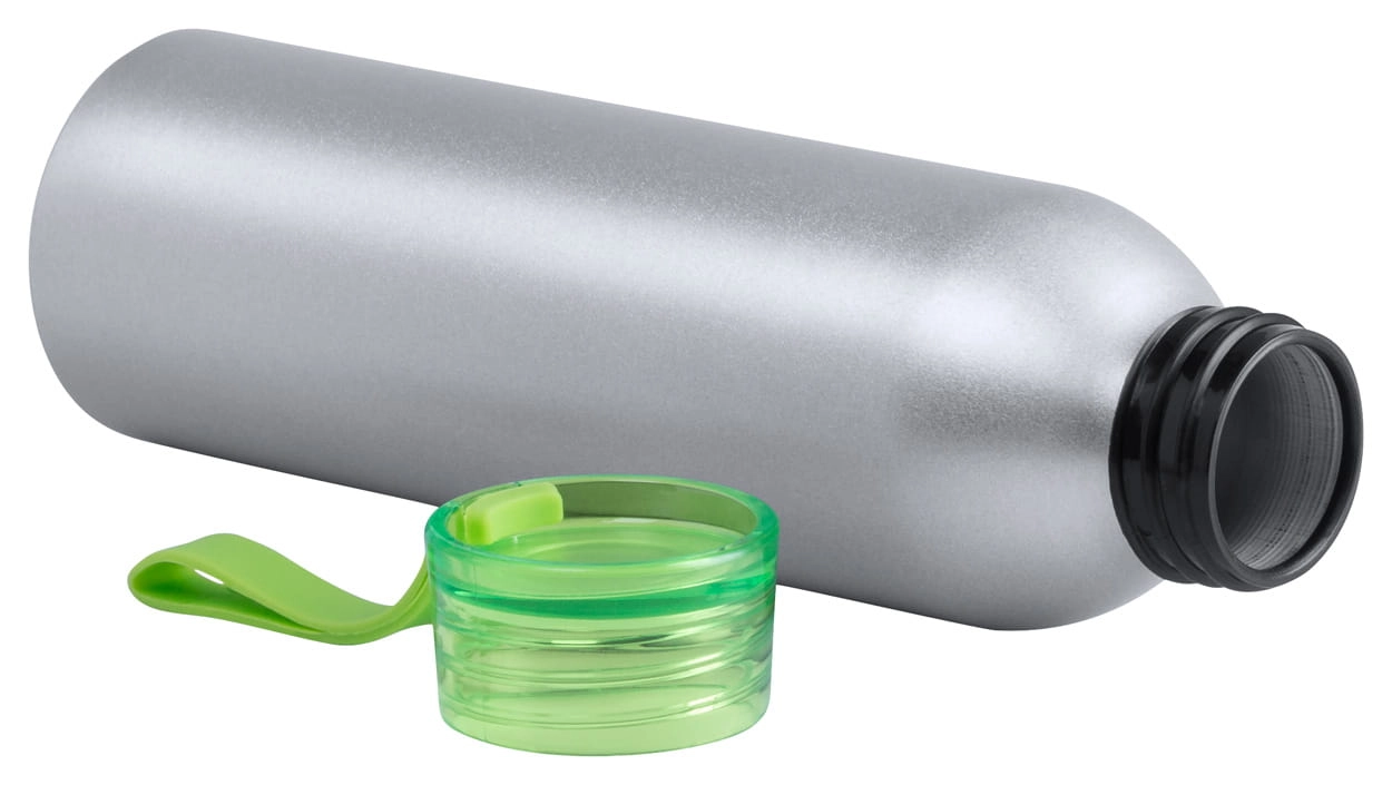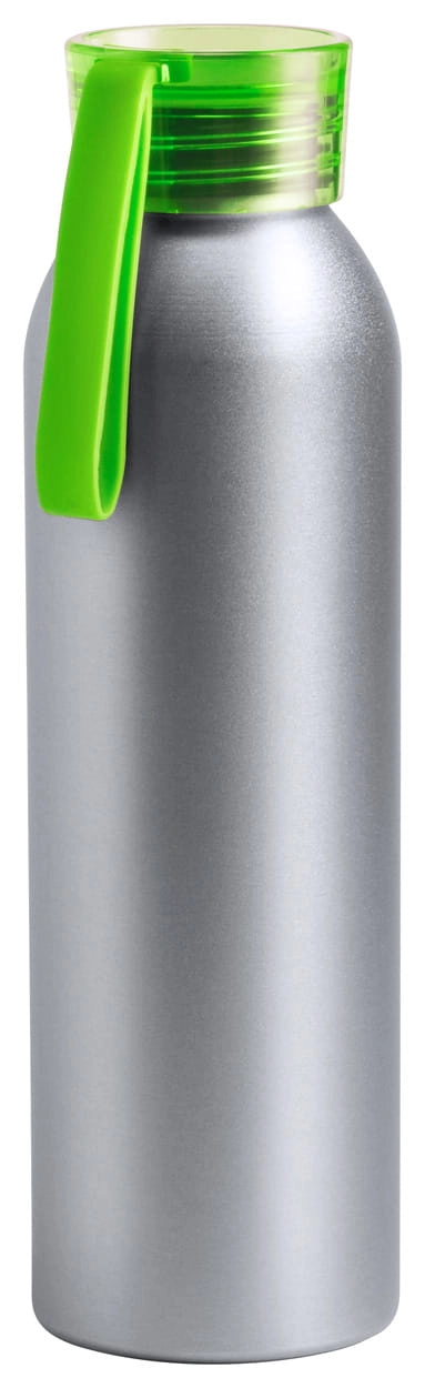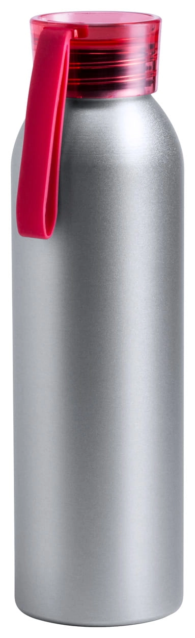 Aluminiowa butelka sportowa z kolorową zakrywką i silikonowym paskiem, 650 ml.