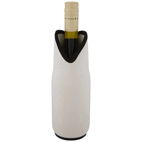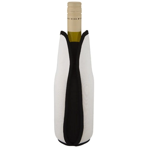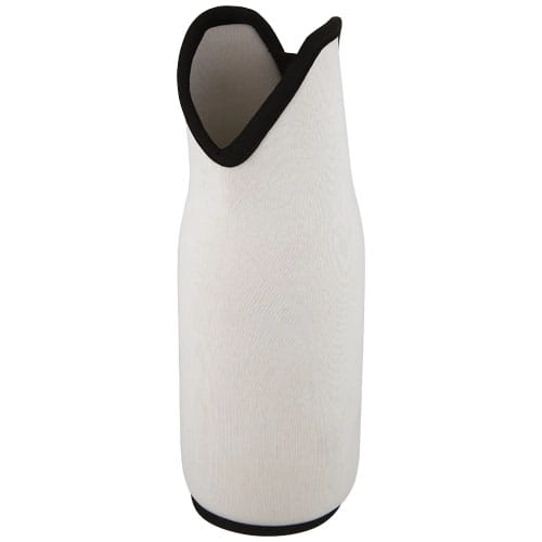 Uchwyt na wino z neoprenu z recyklingu z drobnymi przeszyciami i dodatkową izolacją, dzięki czemu wino pozostaje dłużej chłodne, a butelka jest wygodna do trzymania. Rozciąga się i rozszerza, dopasowując się do wszystkich rozmiarów butelek i utrzymując butelkę ciasno w miejscu. Chroni również butelkę wina przed pęknięciem podczas transportu.