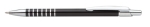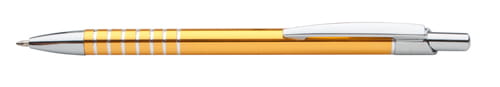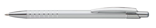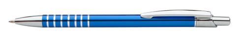 Aluminiowy długopis z metalowym klipem, dostarczany z niebieskim wkładem.