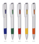 Srebrny klip, korpus i sprężynka, chromowany wierzchołek kolorowa wstawka i gumka.
