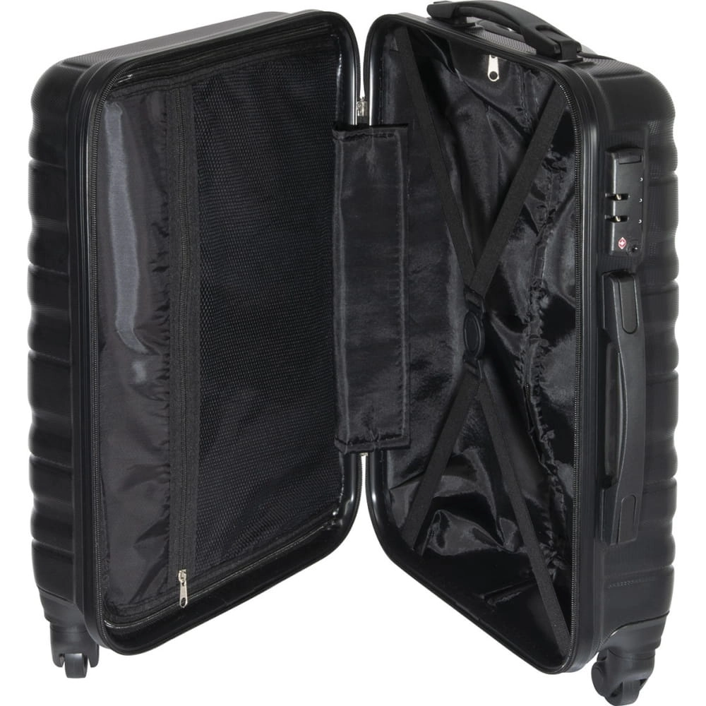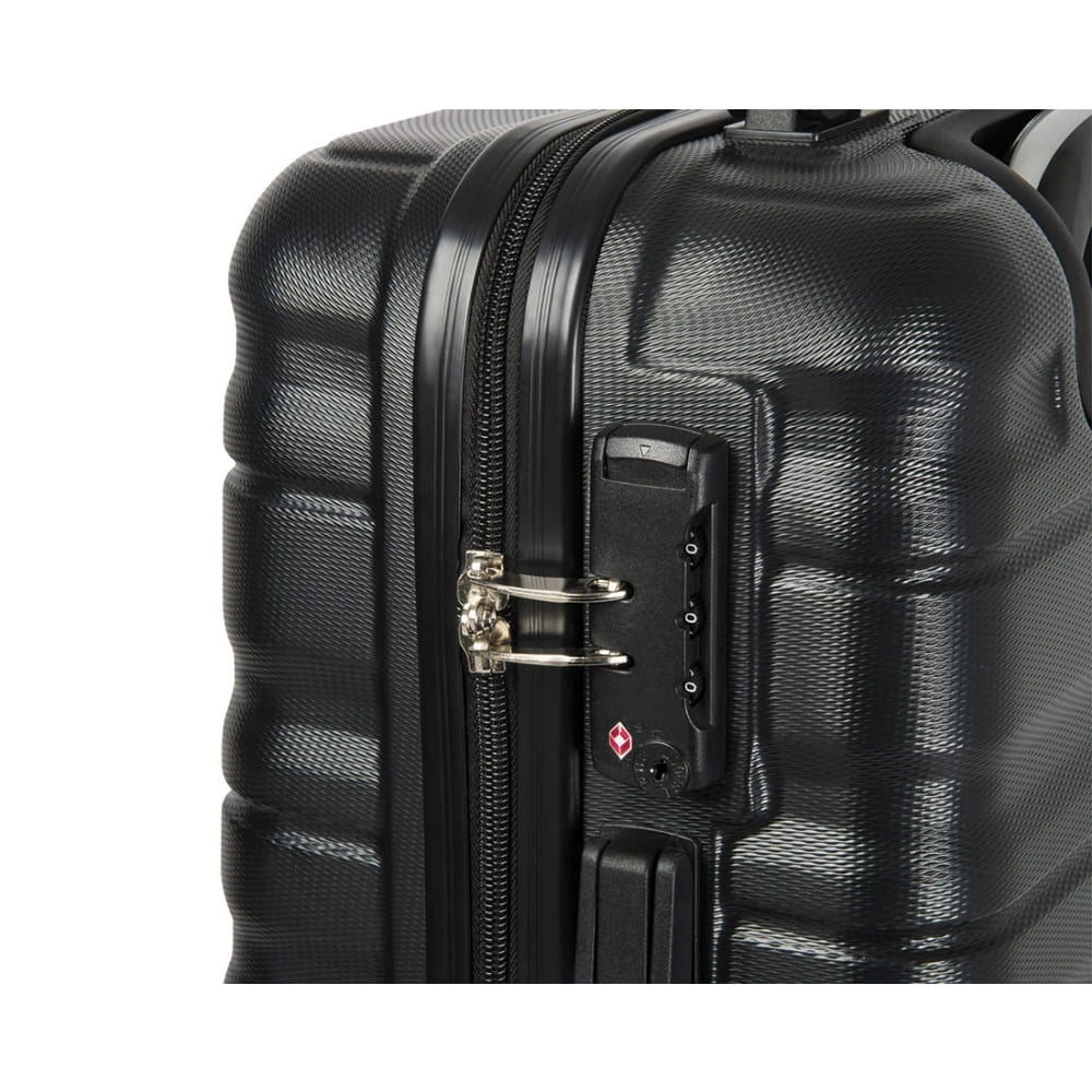 Solidna walizka na kókach z dwoma komorami - jedną oddziela materiałowe zamknięcie z dodatkową siateczkową kieszenią zamykaną na zamek, ubrania w drugiej komorze można zabezpieczyć zapięciem na elastyczne pasy. Walizka ma 4 kółeczka i teleskopową rączkę oraz dodatkowe dwa uchwyty do przenoszenia po obu stronach. Dzięki zamkowi TSA możesz być spokojny o zawartość walizki.
