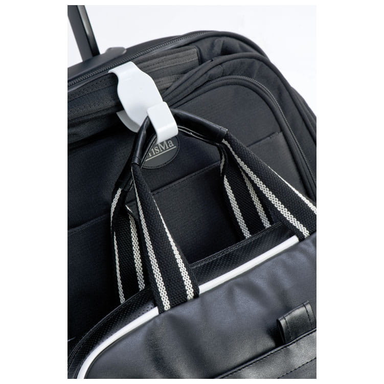 Podróżny wieszak na torbę, który wystarczy zawiesić na rączce od walizki, a następnie powiesić na nim torebkę.