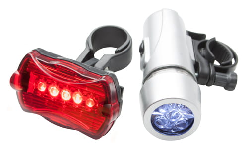 Zestaw lampek do roweru z 5 ledami. Zestaw nie zawiera baterii.